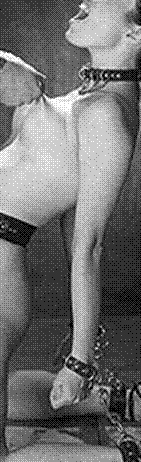 Keres suspended when Simban arrives. "Stupid, stubborn, stinking Greek," Simban bellowed. "You've withstood punishment for a month, you have proved your mettle-now surrender!" Keres only stared straight ahead. Letting Keres's head drop, Simban called for Gylo. "My patience is gone Greek. No more simply wearing you down. Gylo, get this bitch down and hang her by her teats. When she is crazed with the pain, then rack her on her back on the floor. Get water down her-copious amounts until her belly swells--then clamp her rings to the ceiling chains and rip them from her teats! Make her feel it Gylo-take your time." Gylo did as ordered. He unfastened Keres from the timber holding her aloft and rebound her so she stood vertically. He then coiled ropes around her breasts and pulled her up on her toes. Within minutes the terrible pain seared into her chest and Keres wailed deeply. When he was sure the agony was at its peak, before numbness set in, Gylo cut the suffering girl free and she collapsed on the floor. Quickly gathering the ropes, Gylo attached her wrists and ankles to rings on the floor and racked her tight. He dropped the timber formerly holding her aloft and attached it by chain to her nipple rings.